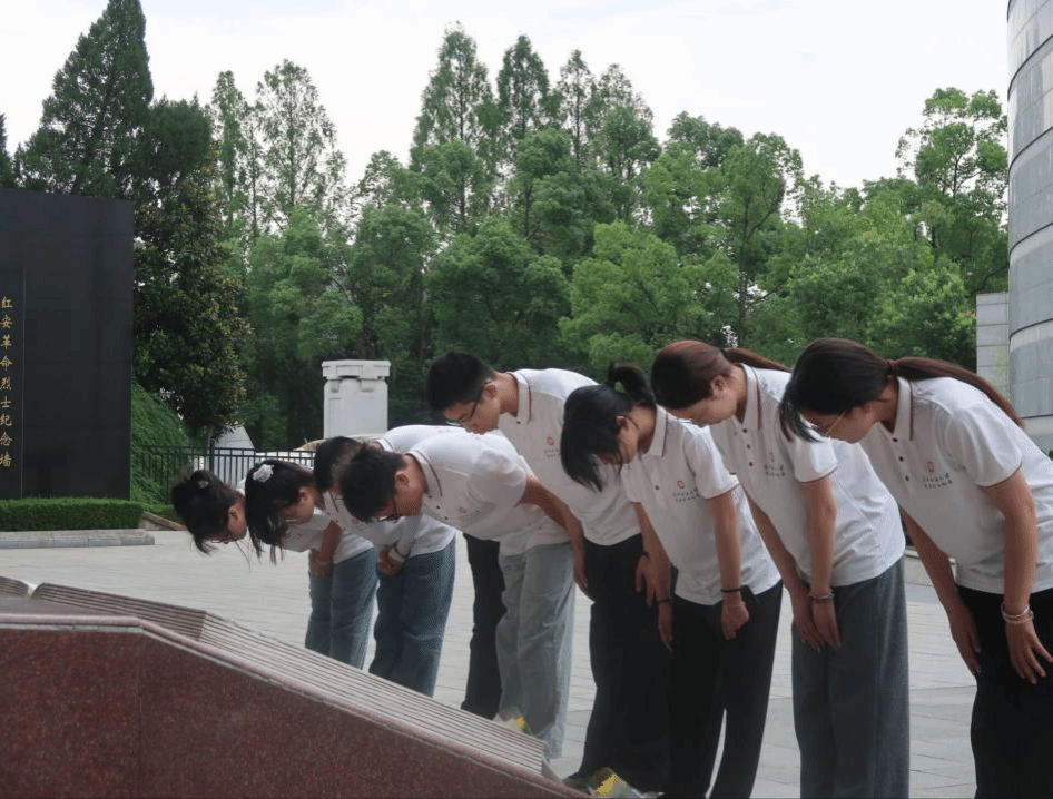 红安的红是十四万革命烈士用鲜血染红的。在红安,家家有烈士,户户树丰碑。实践团队员驻足于庄穆严肃的烈士碑前,瞻仰那些以生命为代价书写的英雄之名。大家手捧菊花,瞻仰先烈,并列肃立、默哀、鞠躬,向革命烈士表达敬意,寄托哀思。一寸山河一寸血,一捧热土一捧魂。他们倒下的身影,成为了后来者前行的路标,他们坚定的信念,激励着无数中华儿女继续奋斗、勇往直前。