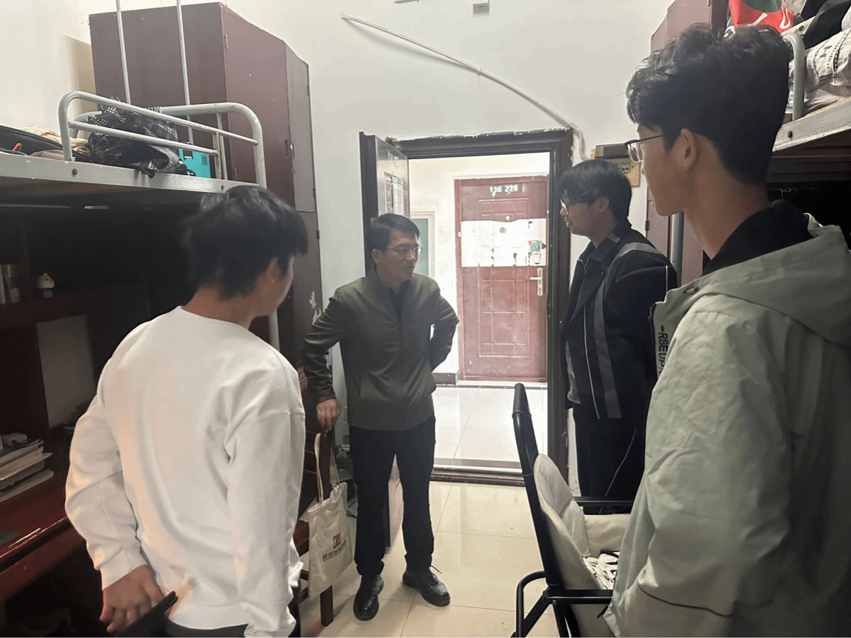 会后,朱张军深入13栋一站式员工中心和13B227结对寝室,与朱道康等同学亲切交谈。朱张军关切询问同学们的学习生活,并对同学们提出了3点期望。一是希望同学们提升主动学习意识,只有夯实专业基础,稳扎稳打,方能善作善成。二是希望同学们培养批判性思维和创新能力,勇于探索未知领域,敢于挑战传统观念,通过不断学习和实践,提升解决问题的能力,为未来的职业生涯和社会进步做出贡献。三是鼓励同学们多参加校园活动,学习之余加强锻炼,平日注意适时放松,注重身心健康。同学们纷纷表示深受鼓舞,他们将不断完善自我,展现best365英国体育在线学子最好风貌。