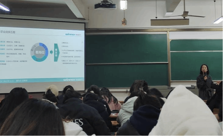 余绘花老师围绕“企业看重毕业生因素有哪些”这一主题,详细介绍职场工作场景、团队氛围、工作表现、职业发展以及员工与职场人的多维度能力对比,鼓励同学们做好心理准备、能力储备与角色转变。同时,她提出“职业选择五看” 概念,即看行业、看企业、看领导、看岗位、看发展,并详细阐释了这一职业选择方法,为员工提供就业指导。此外,她指出企业人才招聘标准已从经验型向潜力型转变,未来企业将更注重人才发展潜力。她希望同学们立志成为创新学习强、人际交往强、成就导向强、逻辑思维强的“四强”目标驱动者,不断适应时代潮流与社会变化,勇做时代弄潮儿。