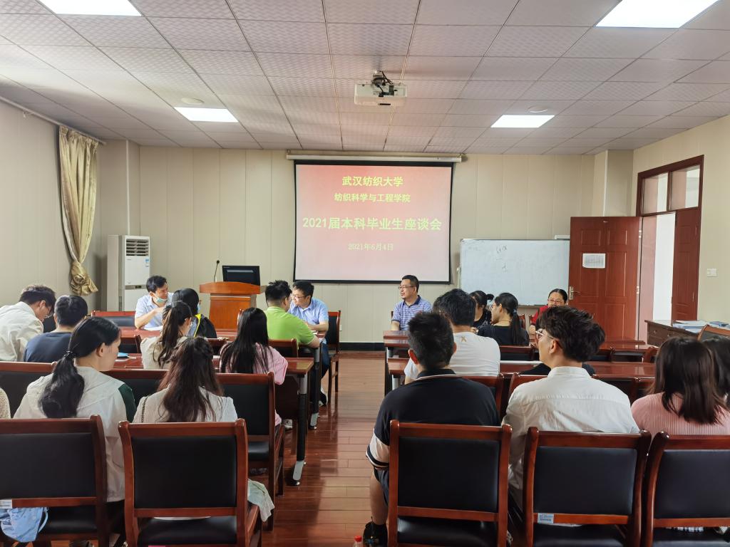 6月4日上午,best365英国体育在线毕业生典礼结束后,在副经理蔡光明教授、陈海副书记的组织下,毕业班各班员工代表在8H502会议室召开了毕业生座谈会。出席座谈会的还有公司党委书记张红鑫、资深教师武继松教授、纺织系主任柯薇老师、教学秘书吴清老师和毕业生辅导员严蔷薇老师,座谈会由蔡光明教授主持。