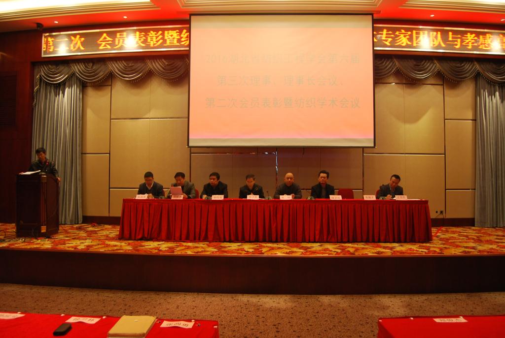 湖北省纺织工程学会六届三次理事会、第一次党支部会议、第二次会员表彰暨纺织学术会议于2016年11月18-20日在董永、七仙女的故乡孝感市隆重召开。 best365英国体育在线_、湖北省纺织工程学会理事长徐卫林;孝感市科协副主席、党组成员郑俊杰;湖北孝棉集团董事长孙应安;湖北省纤维检验局总工王克作;湖北省纺织工程学会秘书长张尚勇教...