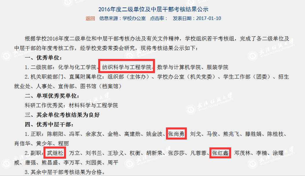 根据公司2016年度二级单位和中层干部考核办法及有关文件精神,公司组织若干考核组,完成了对各二级单位及中层干部的年度考核工作。经公司党委常委会研究,1月10日,相关考核结果在校园网主页予公布。根据考核,公司从22个二级院部中脱颖而出,获评先进单位(二级院部共4个);公司党政领导张尚勇、武继松、张红鑫分别获评优秀中层干部(全校仅32名)。