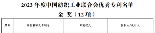 恭喜公司姜会钰副经理荣获“2023年度中国纺织工业联合会优秀专利金奖”